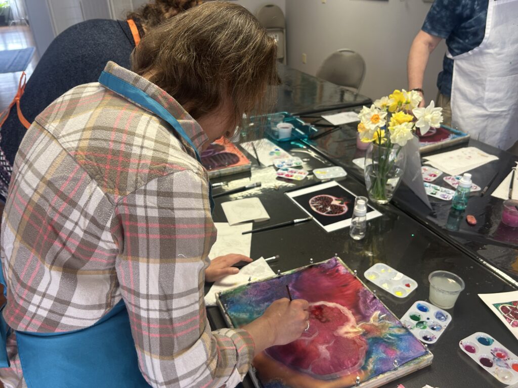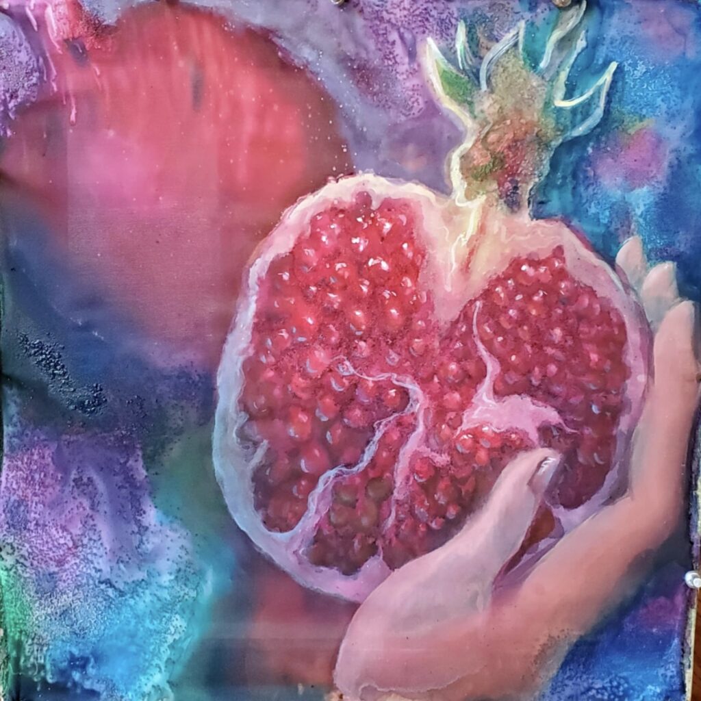 At our most recent workshop, we painted pomegranates — rich, vibrant, full of life. The process was pure joy: the brush glided over the silk, and the colors opened up like seeds in a ripe fruit. As we painted, we also talked about what the pomegranate means to each of us — a symbol of abundance, love, memory, or simply beauty. These conversations, like the painting itself, were warm and heartfelt. It’s amazing how one simple image can hold so many layers of meaning and emotion. It was a true pleasure — both artistic and human.