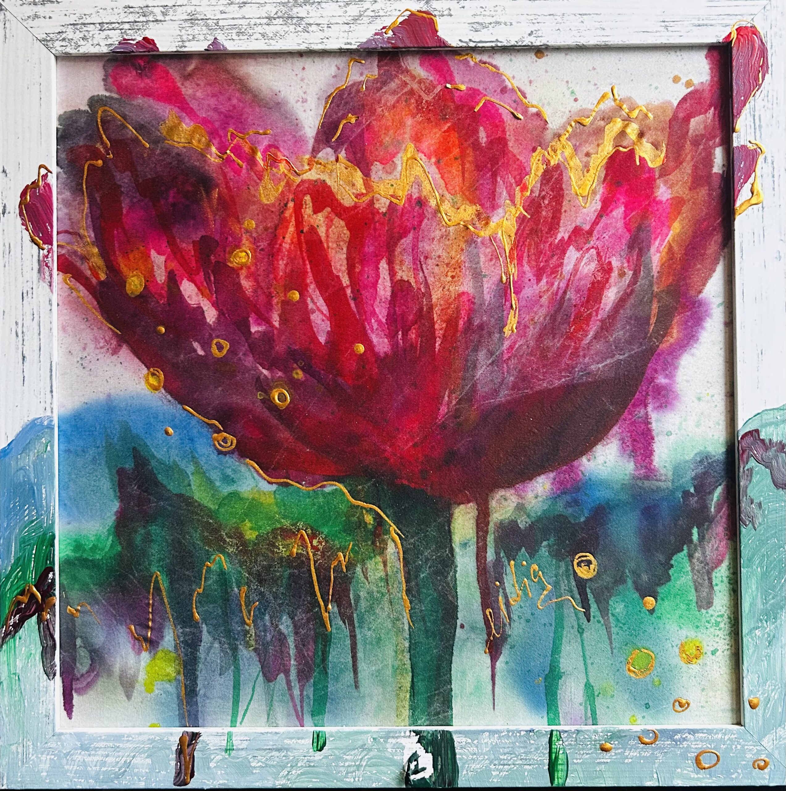 MATERIALS: painting on silk, wooden frame with hand-painted acrylic paints
