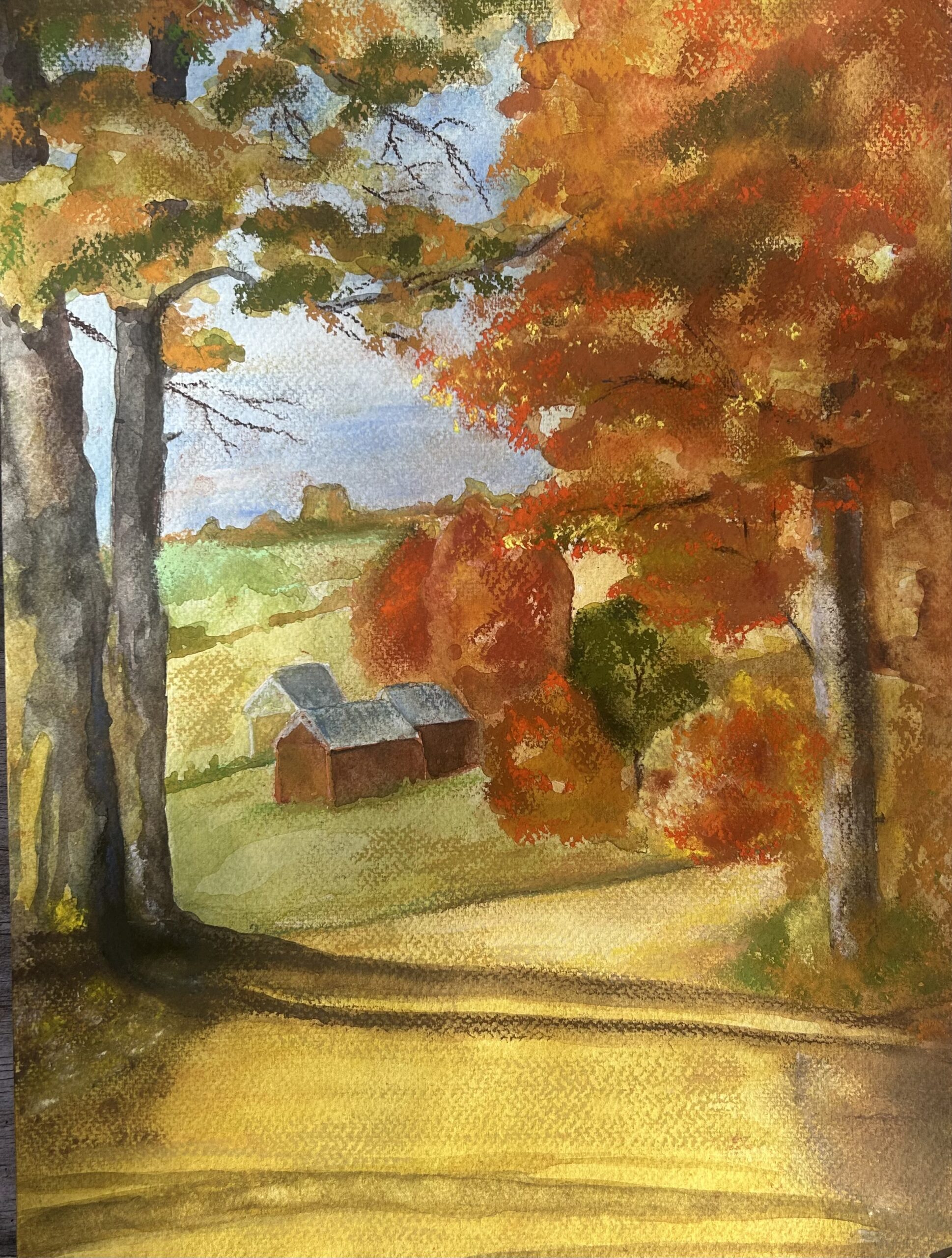 Fall MATERIALS: watercolor, pastels SIZE PAINTING: 15″x11″ CREATION DATE: 2023 PRICE: $75